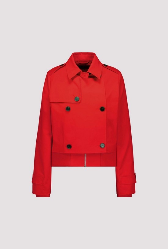 Korte rode trenchcoat met dubbele knoopsluiting van Monari